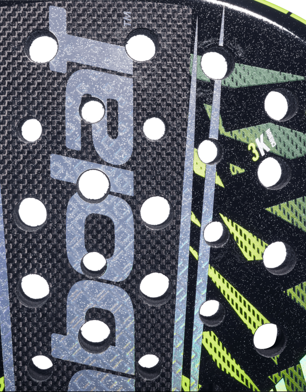 Incorpora núcleo Eva Black para una salida de bola rápida y consistente, combinado con caras en fibra de carbono y vidrio, que aportan durabilidad, flexibilidad y confort en el golpeo. Además, su acabado 3D Spin permite imprimir efectos avanzados que mejoran tu juego táctico.