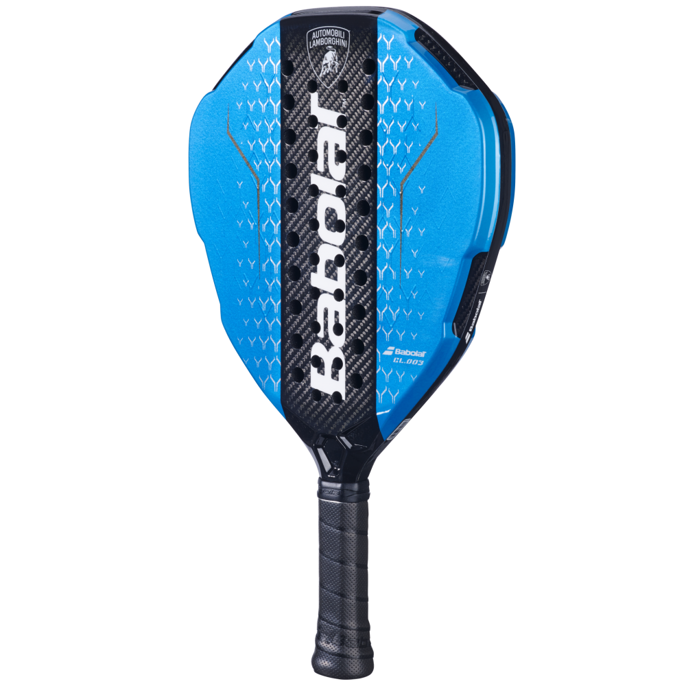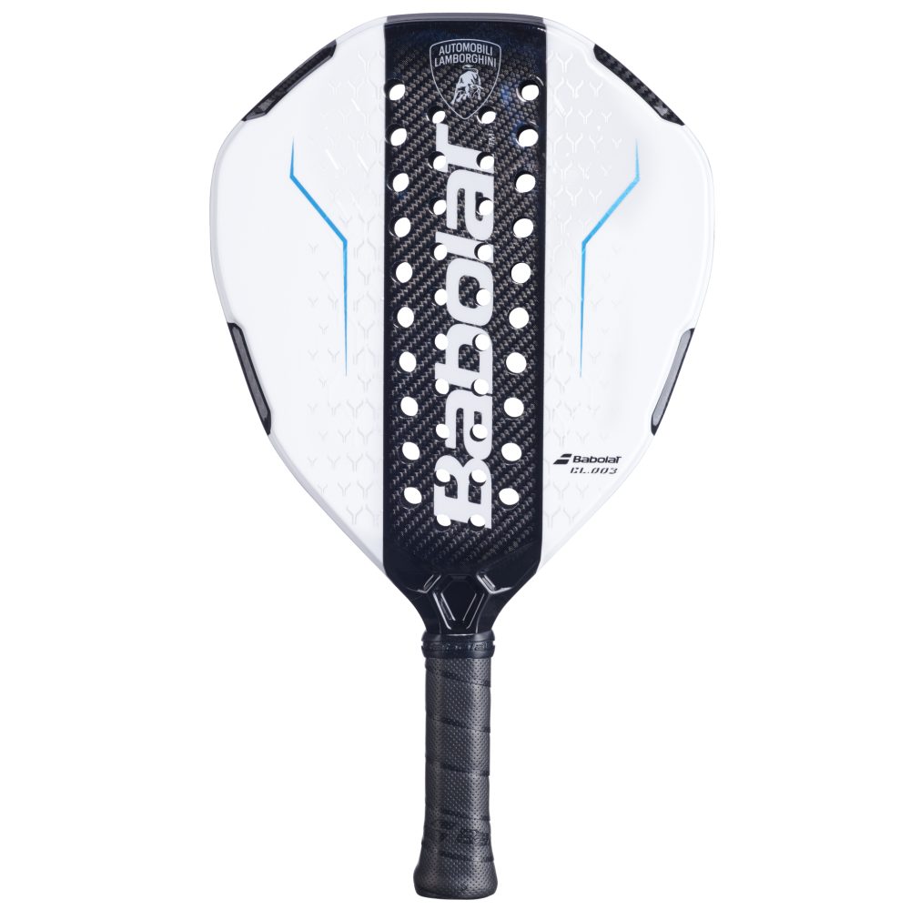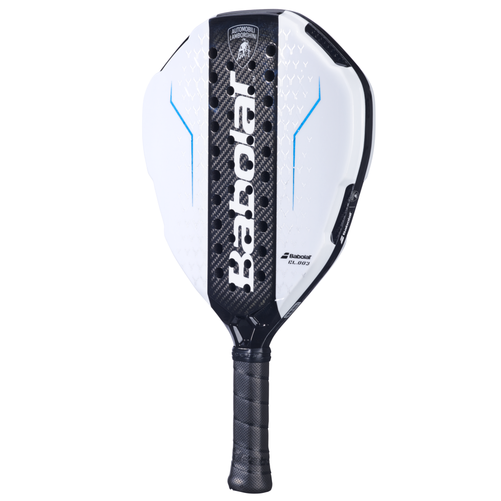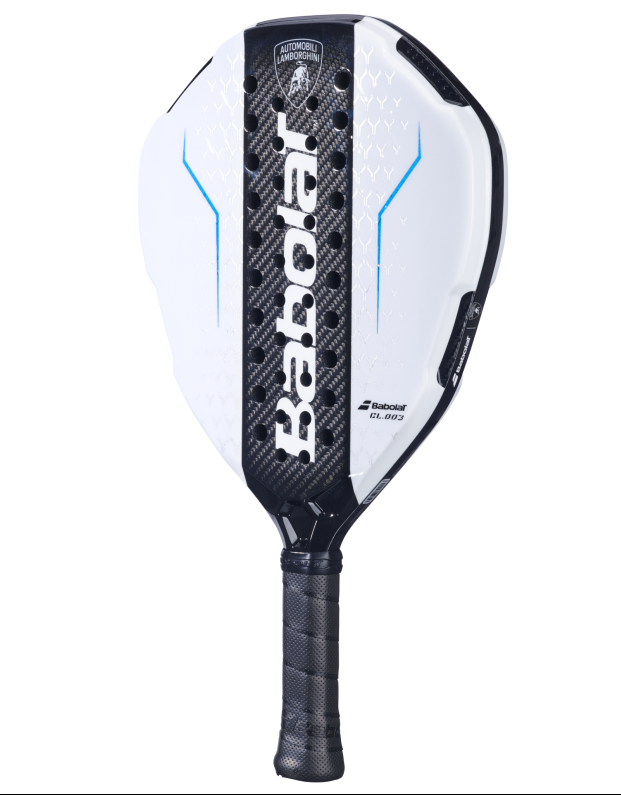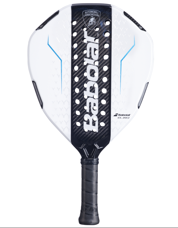La Babolat Lamborghini BL.003. es una pala de pádel exclusiva disponible en dos modelos: Azul y Blanca, que combina potencia, ligereza y un diseño inspirado en la ingeniería Lamborghini. Pensada para jugadores que buscan rendimiento ofensivo con máxima manejabilidad.