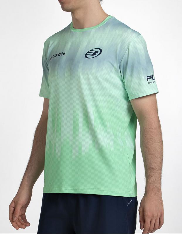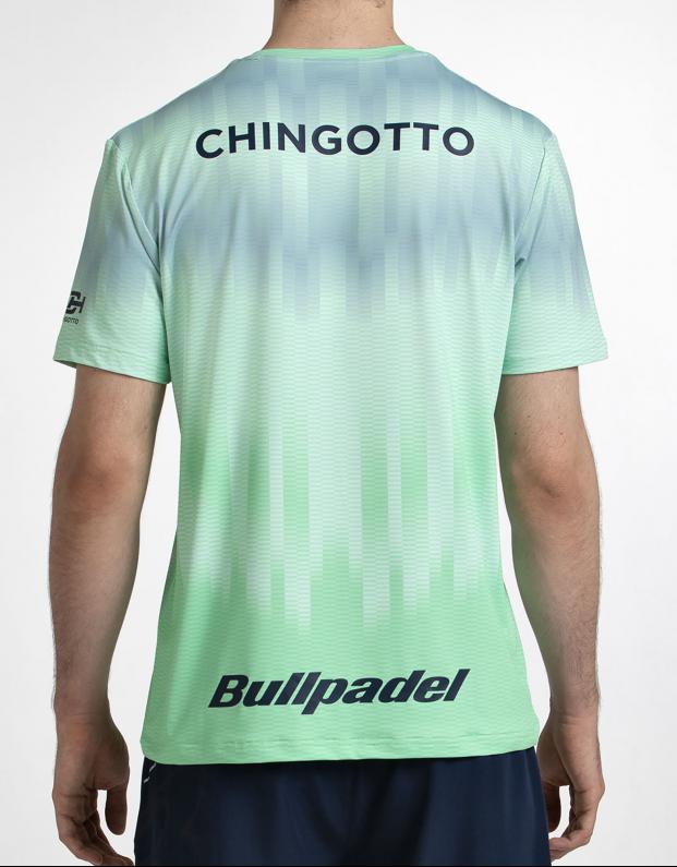 La Camiseta Bullpadel Chingotto 26V está diseñada para los jugadores que buscan comodidad, rendimiento y un estilo inspirado en uno de los grandes referentes del pádel. Se trata de una prenda confeccionada en punto elástico de poliéster, con un diseño sublimado que incorpora las firmas y gráficos característicos del jugador.