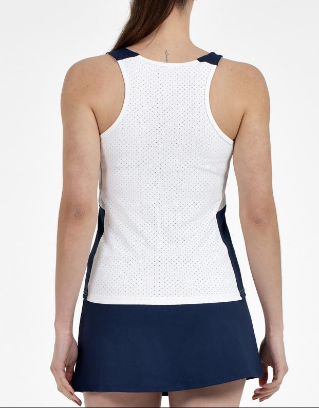 La Camiseta Bullpadel Porson para mujer combina diseño actual y alto rendimiento. Con silueta entallada y tirantes, tejido elástico y tecnología Drynamic de secado rápido, ofrece comodidad, frescura y libertad total de movimiento en pista.