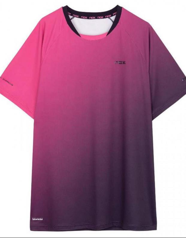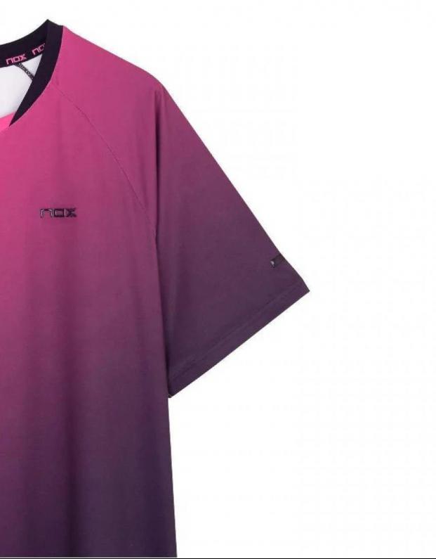 Camiseta Nox Pro Morado Rosa Degradado con tecnología Balance Fresh. Ligera, transpirable y con un diseño degradado moderno para rendir al máximo con estilo dentro y fuera de la pista.