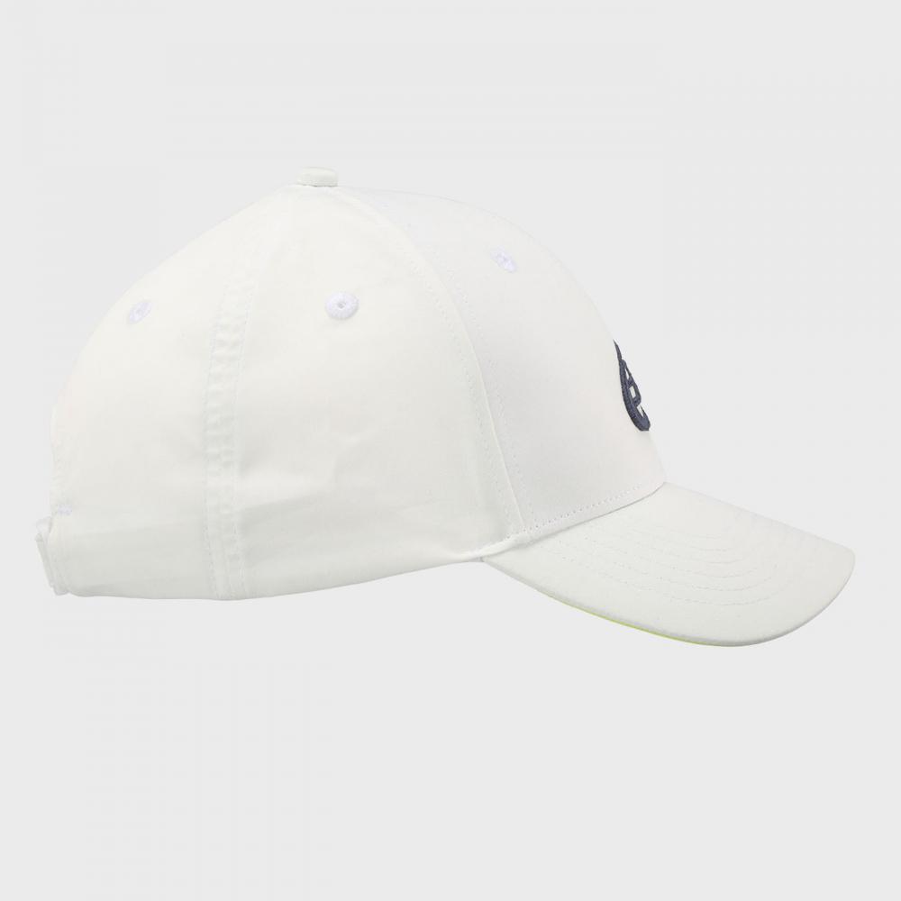 Su logo bordado en alto relieve aporta un acabado distintivo y sofisticado, mientras que el tono blanco hueso ofrece frescura y versatilidad, permitiendo combinarla fácilmente con cualquier equipación deportiva.