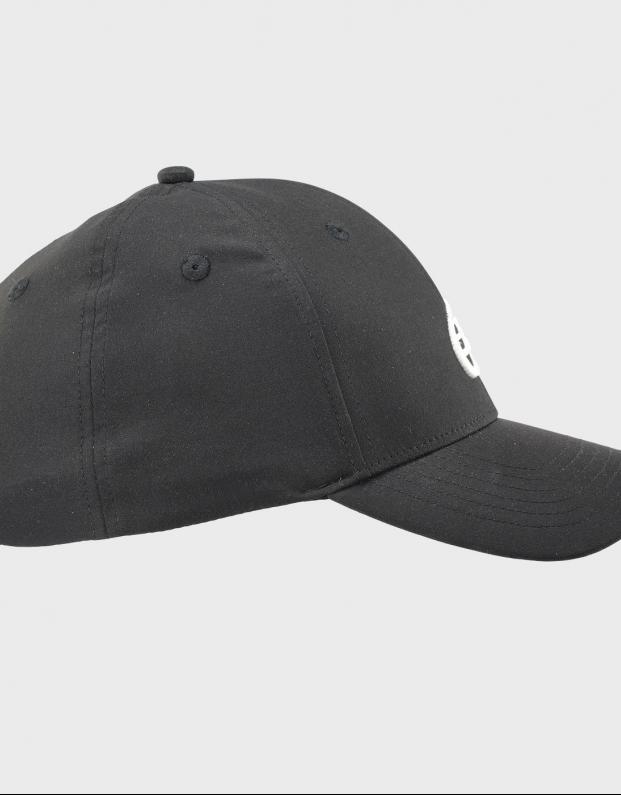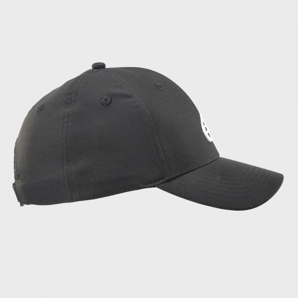 El logo bordado en alto relieve en la parte frontal aporta un acabado distintivo y sofisticado, mientras que su color negro clásico asegura versatilidad y facilidad para combinar con cualquier equipación deportiva.