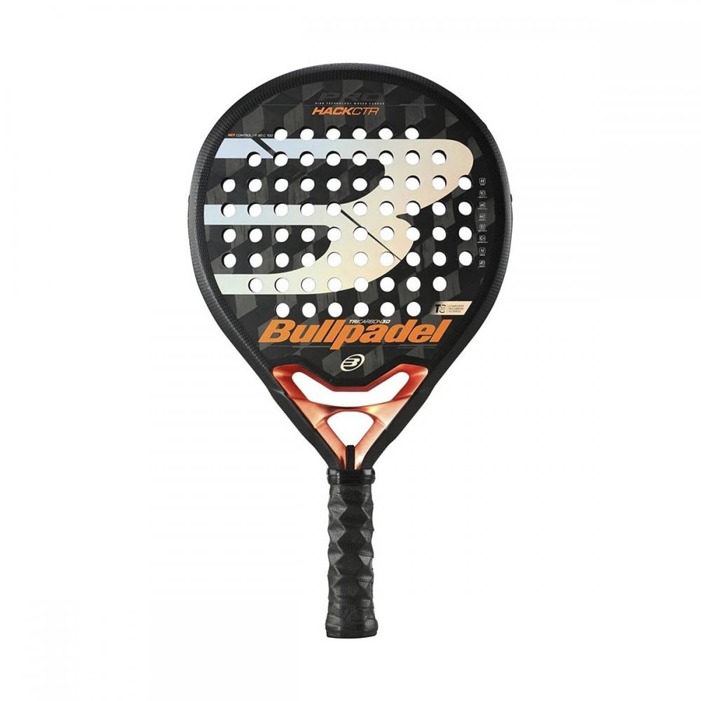 Pala pádel Bullpadel Hack Control 20 Goma MultiEva. Forma redonda. Peso: 368grs. . Se adapta a cada jugador. Fabricada con 100% carbón en el marco. Núcleo externo TriCarbon. Núcleo interno de goma MultiEva. Marco Metalshield de aleación de aluminio. Sistema Vibradrive que absorbe las vibraciones. Nivel avanzado. Incluye funda.