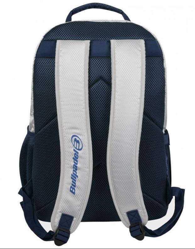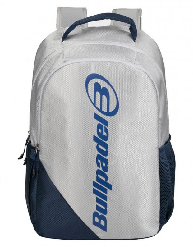 Mochila Bullpadel BPM26004 Advance 2026 en blanco, resistente y ergonómica, con compartimentos para pala, bolas y accesorios. Ideal para entrenamiento y competición.