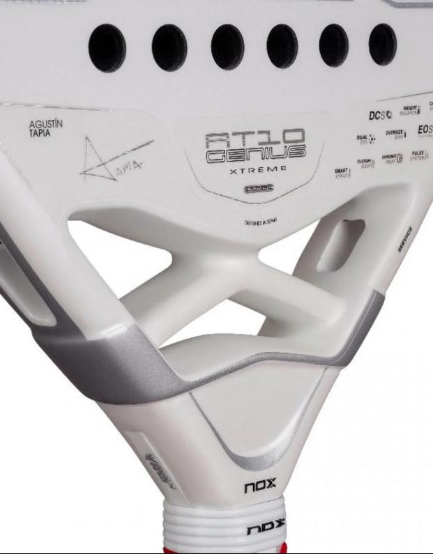 La NOX AT10 GENIUS ATTACK 12K ALUM XTREM 2026 no es solo una pala de potencia: es la extensión del juego agresivo de Agustín Tapia. Perfecta para quienes dominan el punto desde la red con golpes contundentes, ofreciendo máxima manejabilidad, precisión y confort.