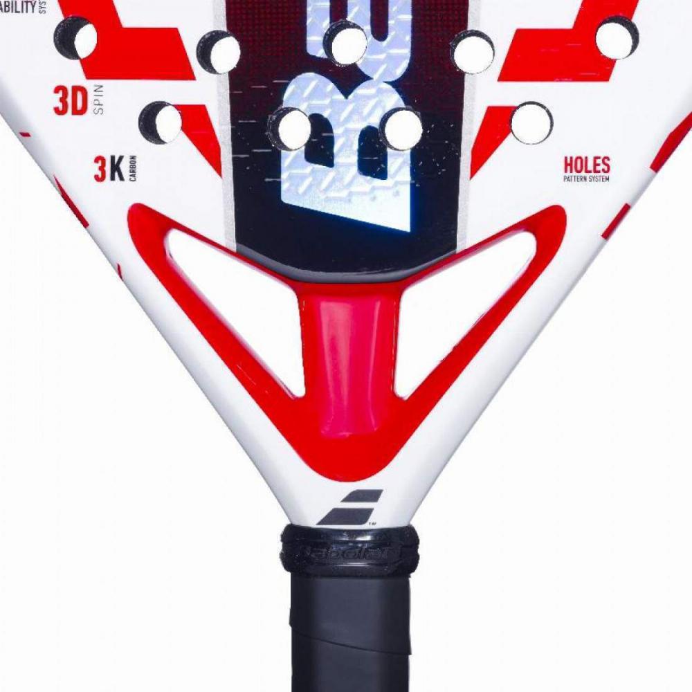 Gracias a la tecnología Carbon Flex, que combina fibra de carbono y fibra de vidrio, ofrece una potencia explosiva accesible sin perder confort en el golpeo. El núcleo EVA Black proporciona una excelente salida de bola y una respuesta rápida en cada impacto. Además, el acabado 3D Spin permite generar efectos más agresivos y precisos, ideales para dominar el juego aéreo y los golpes cortados.