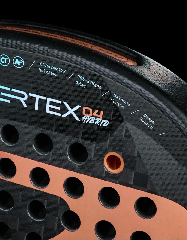 La Bullpadel Vertex 04 Hybrid es una pala de formato redondo concebida para jugadores profesionales o avanzados que priorizan el control sin renunciar a estabilidad y rendimiento en situaciones ofensivas.