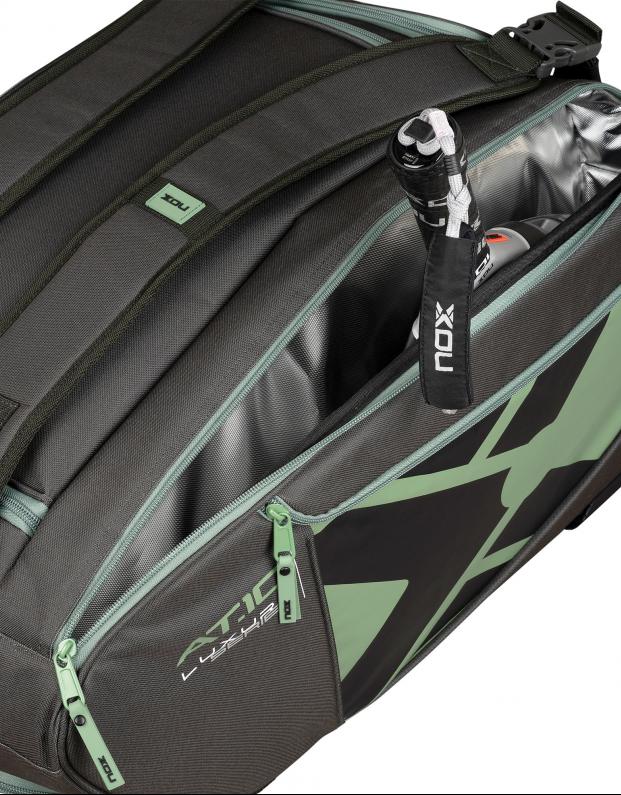 - Compartimento térmico: Con tecnología NOX ThermoTech, con capacidad para hasta 3 palas de pádel, botellas, etc.