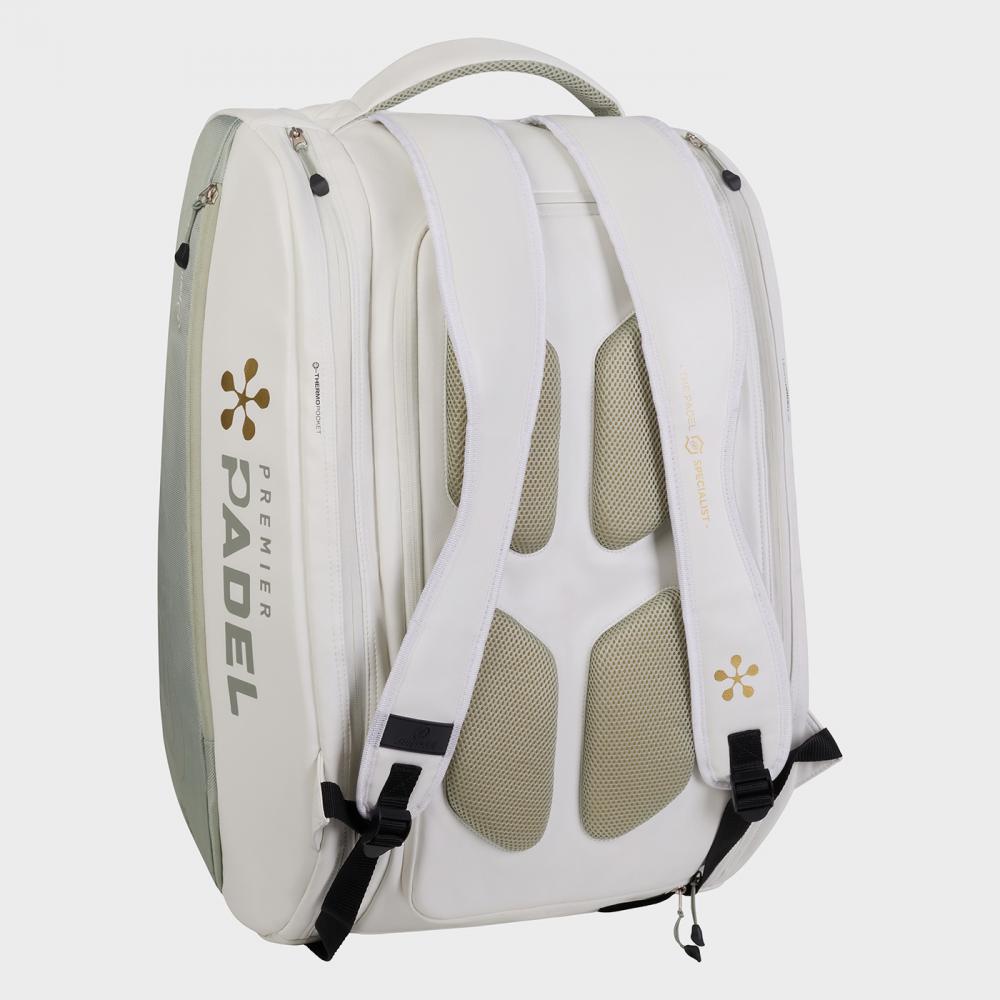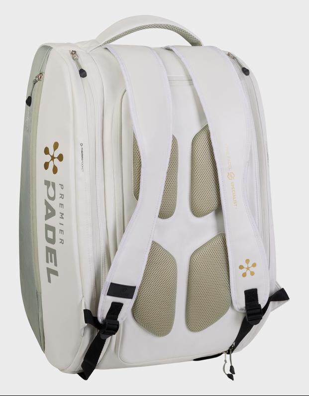 El Bullpadel Vertex W Premier Padel 26 Verde Mujer es un paletero de alta capacidad diseñado para jugadoras exigentes. Con dos compartimentos térmicos para cuatro palas, amplio espacio central y diseño ergonómico, ofrece protección, organización y comodidad en cada desplazamiento.
